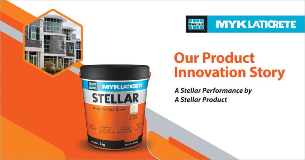 STELLAR Grout (tile joint) is India’s first ready-to-use tile joint and is best suited for internal and external tile joint grouting of residential /commercial installations where materials must resist physical abuse, shock and/or chemical attack. MYK LATICRETE STELLAR GROUT is a single-component, high-performance, modified joint filling grout, which offers excellent colour uniformity, durability, stain protection, and beautiful tile joints.
