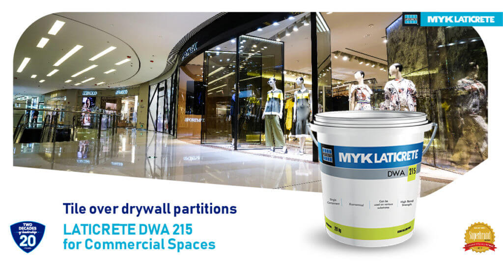 - MYK LATICRETE specialty adhesives enable easy and versatile tile fixing on drywall boards.